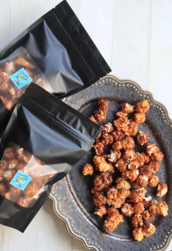 アメリカンキャラメルポップコーン、スパイス入りオートミールクッキー、バナナブレッド、チョコレートブラウニー等英国レシピを中心とした焼き菓子の販売