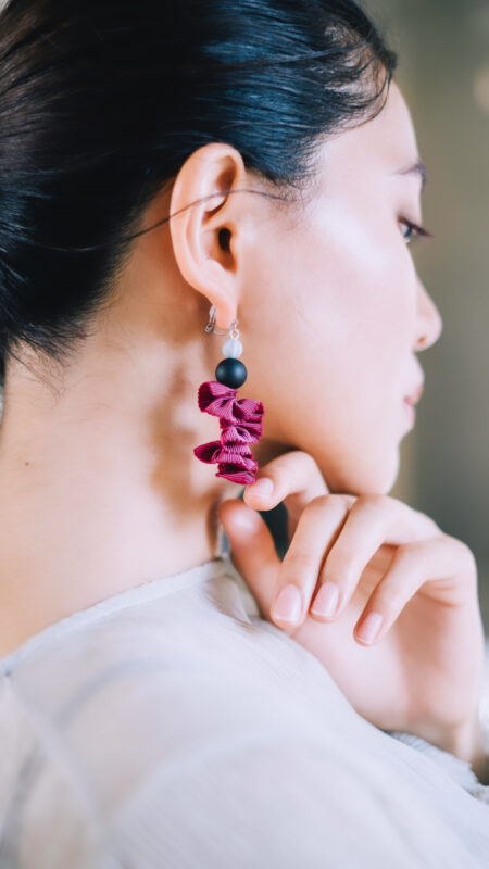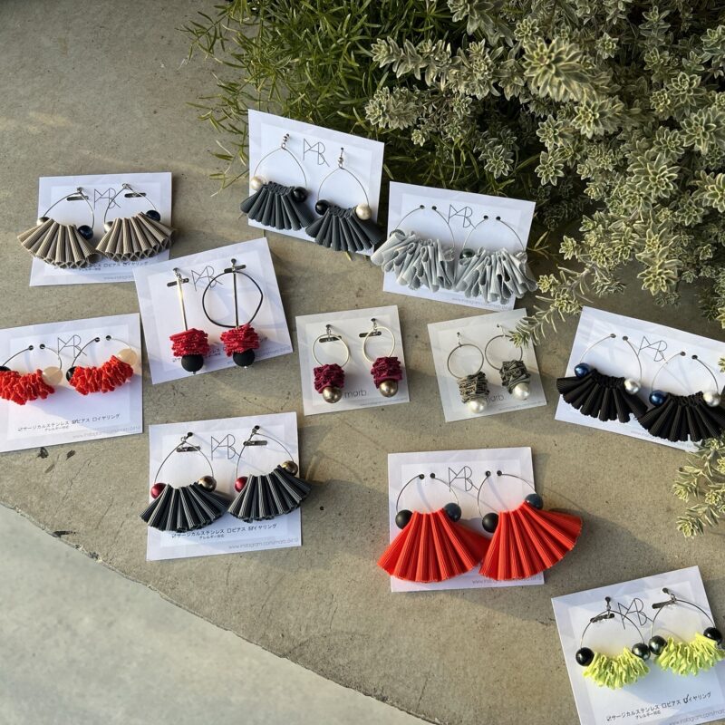 グログランリボンやレザーを使った個性的なデザインのアクセサリーです。