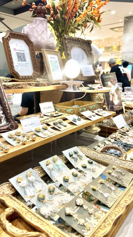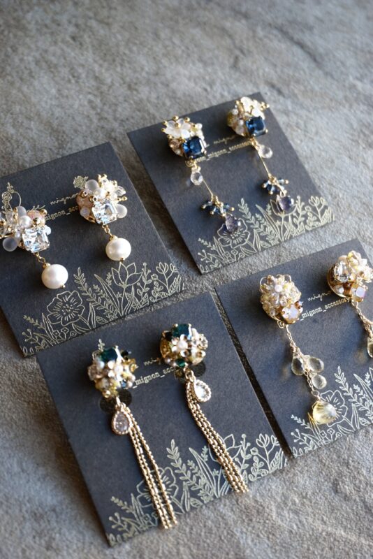 イヤーアクセサリーや、リング、ブレスレット、ネックレス、ヘアアクセサリーを販売しています。