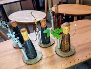 オリジナルの小物(ポストカード立て、ミニ花入れなど)と小家具(スツール、ミニテーブル、ミニラックなど)