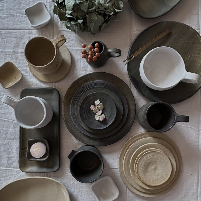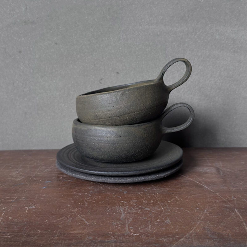 手のあとや自然な揺らぎは、手びねりならではの特徴です。粘土、釉薬にこだわって、土の香りがするような、素朴で優しい色合いの器を是非、お手に取っていただきたいです。