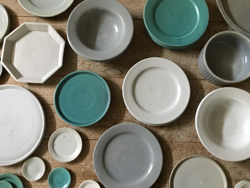 陶磁器(マグカップ、平皿、ボウルなどの食器。植木鉢、盆栽鉢、花器など植物に関する器)