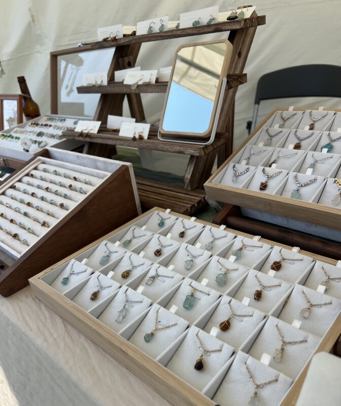 作品は全て一点もので、海と人の物語を感じてもらえるように制作しています。また、出展では「海を守ろうプロジェクト」を実施し、お客様が拾ったシーグラスをお持ちいただくと、希望の一つを選びその場でキーホルダーにしてプレゼントします。海を想う気持ちを共有しながら、作り手と来場者が一緒に“宝物を生み出す体験”ができるのも本ブランドの特徴です。
