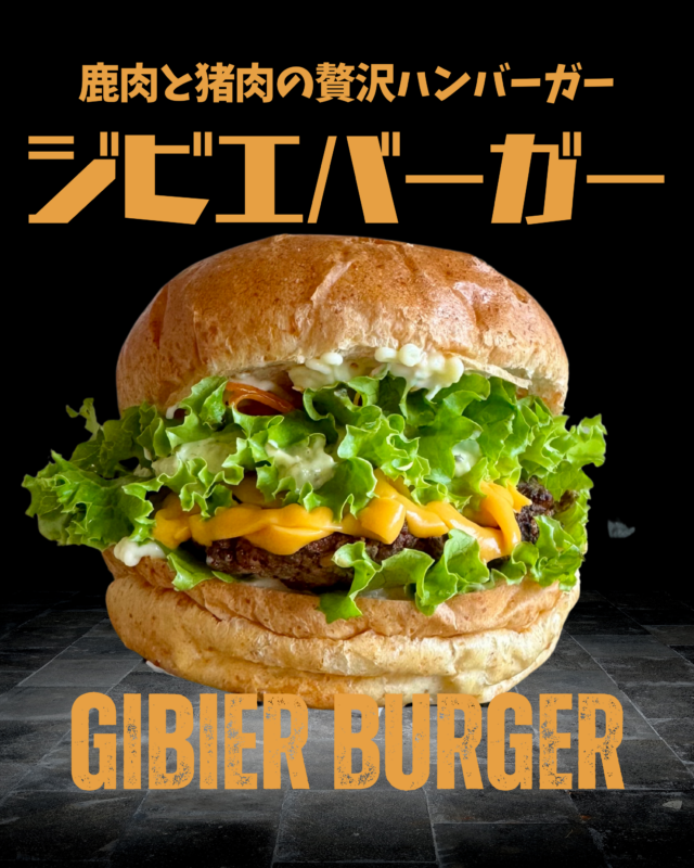鹿肉と猪肉の贅沢ジビエバーガー、クラフトコーラ、レモンスカッシュ、オーガニックコーヒー、メロンクリームソーダ、コーヒーフロート