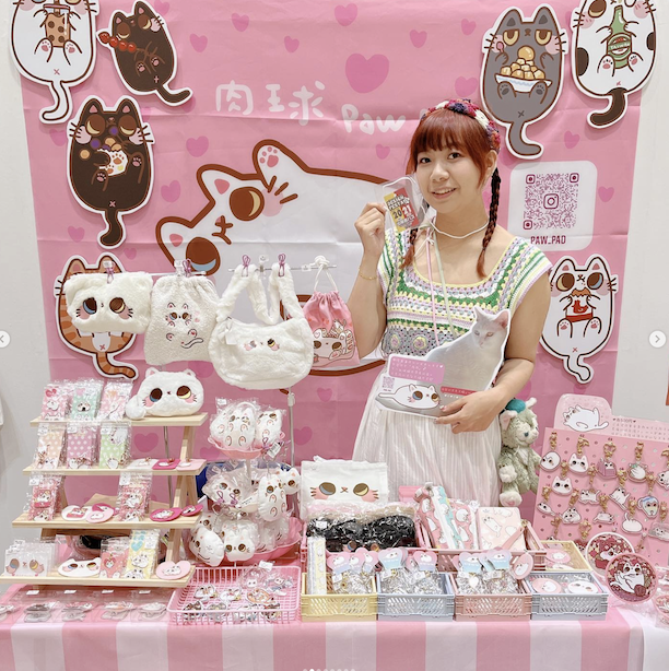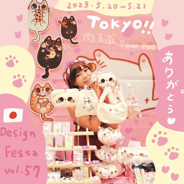 商品は、手作りと工場で作られた、ふわふわで可愛いアイテムがほとんどです。文房具、バッジ、ステッカー、財布、トートバッグなど、どれも大人気です。ありがとうございます!