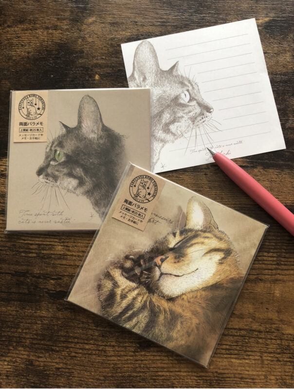 許可を得たモデル猫ちゃん達を緻密に繊細にデジタルで写し描き、デザインした文具や雑貨を販売します。