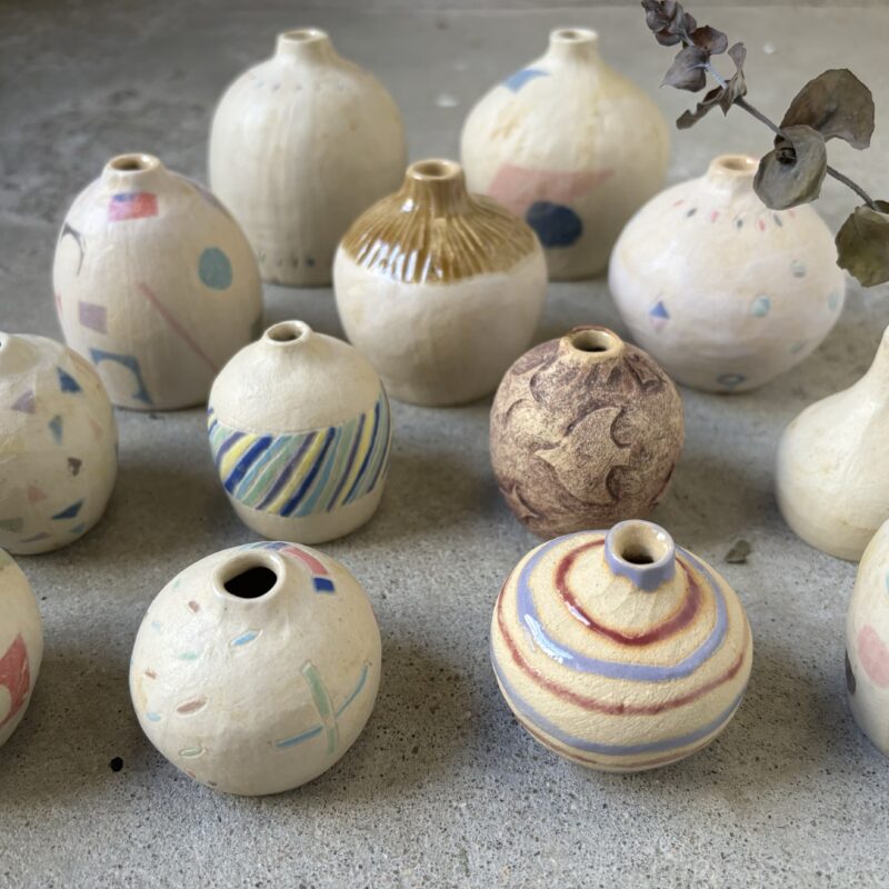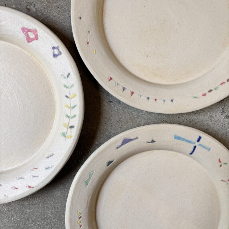 全て手びねりで成形して、色化粧や下絵転写紙で彩色しています。暮らしにそっと寄り添ってくれるものを作りたいです。