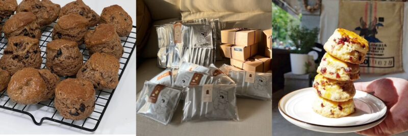 手作りスイーツ、コーヒー豆、ドリップバッグ。