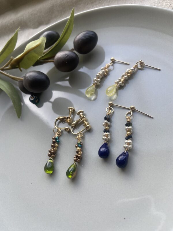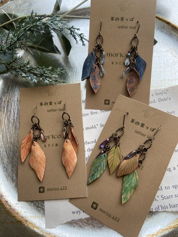 手染め革とチェコガラスとテラヘルツ、刺繍とビーズ刺繍のアクセサリー