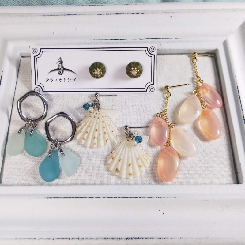 貝殻やシーグラス、ウニの殻などを使ったアクセサリーや雑貨小物の販売