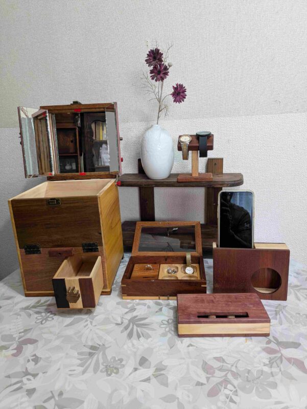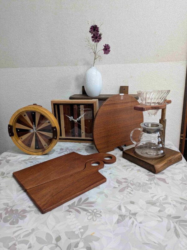 ひのき無垢材をメインに日常家具の時計、ミラー、メイクボックス、カッテイングボード。趣味関連のスマホスピーカー、スパイスボックス、コーヒードリッパースタンド。キッズ商品のアニマルの切抜き、プルバックカー、チャイルドチェアー等の製作、販売しています。