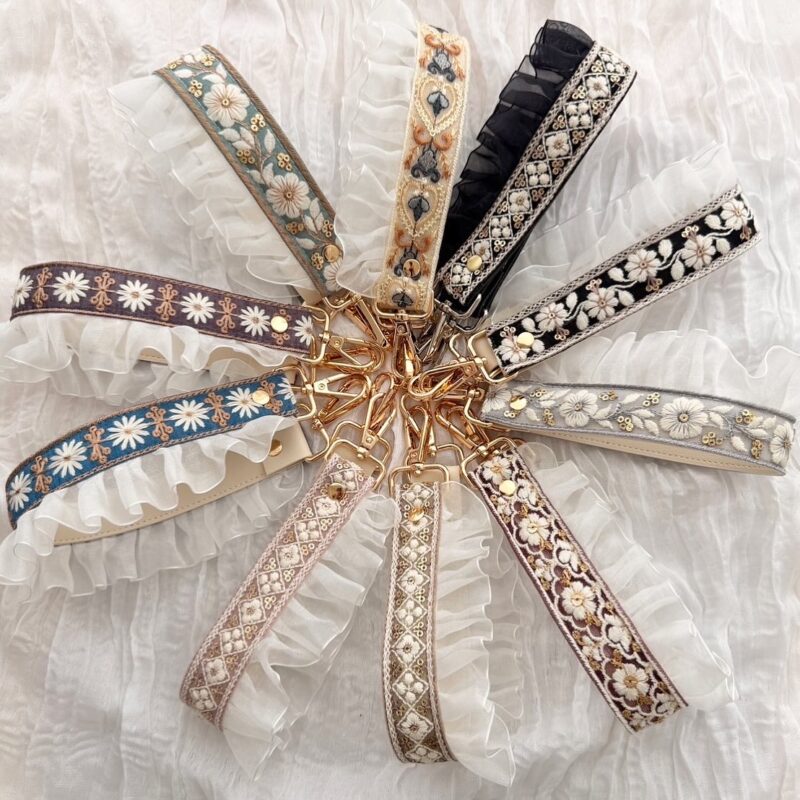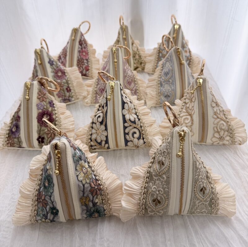 インド刺繍リボンポーチ、ショルダーストラップ、バック、ヘアアクセサリー
