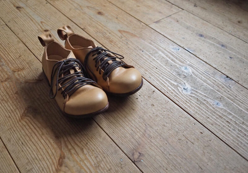 手作りの革靴、と革小物、革のカバン。