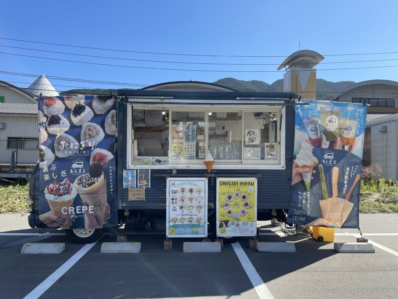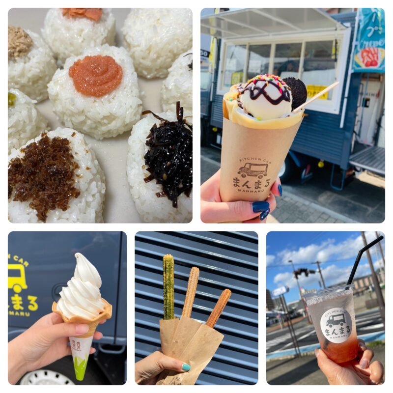 おにぎり、クレープ、ソフトクリーム、チュロス、ドリンク